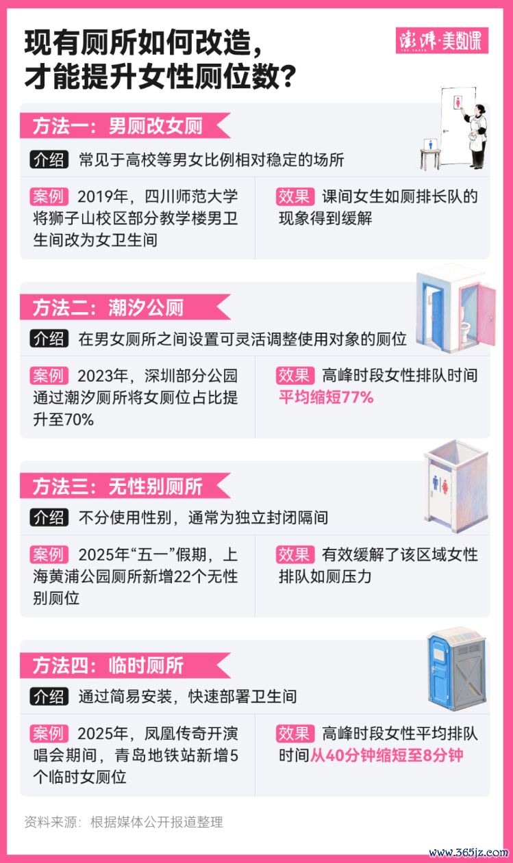 澎湃好意思数课梳剃头现,近几年,为了缓解女性如厕列队的兴隆,多地也尝试了包括树立潮汐公厕、无性别茅厕在内的多种模式来增多女性厕位的占比。