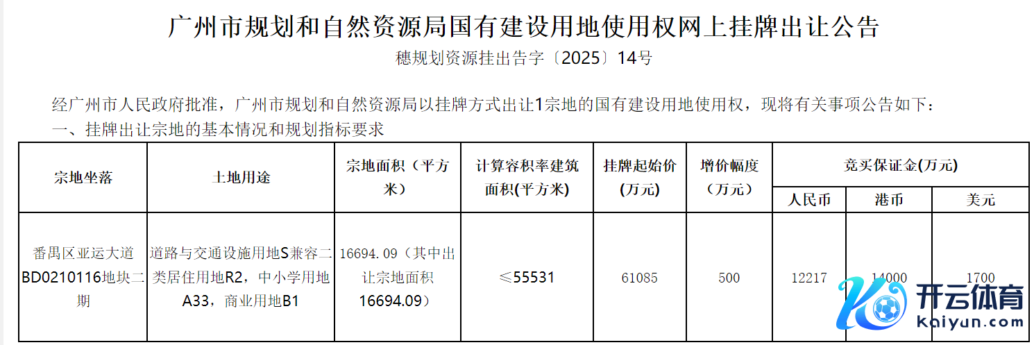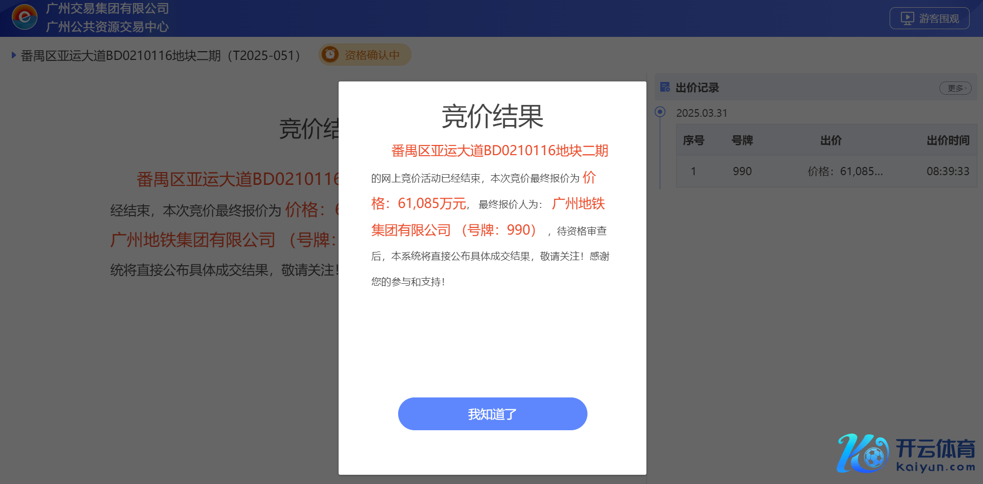 3月31日上昼,番禺区亚运大路BD0210116地块二期毫无或然被广州地铁底价拿下,成交总价61085万元,折合楼面价1.1万元/㎡,若扣除配建内容楼面价约1.19万元/㎡。